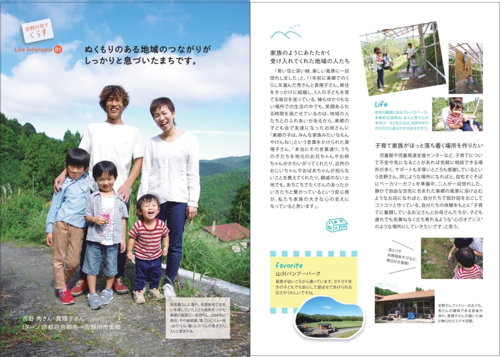 移住者のインタビューに加え、地域のイベントや学校や保育の情報、公園や施設情報も充実している1冊です。