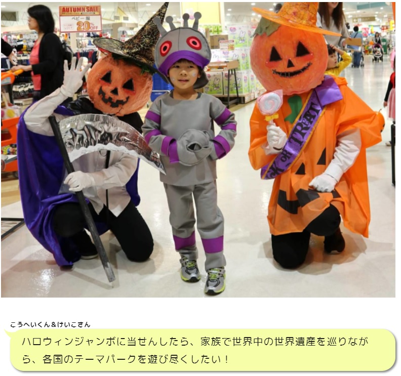 サマージャンボ宝くじ発売! 7億円も夢じゃない!?【8月14日(金)まで】 ハロウィンジャンボ宝くじ発売中! 5億円が当せんするかも!?【10月20日(火)まで】 バレンタインジャンボ宝くじ発売! 3億円が当たるかも!?【3月5日(金)まで】「バレンタインジャンボ宝くじ」の原稿作成にあたっては、事前に「ワイヤーママ公式LINE」にて徳島の子どもたちの“ハロウィンコスプレ写真”を募集。キッズ&ベビーたちの可愛い仮装の様子とともに、「宝くじに高額当選したら、家族でどのようなことに使いたいか」というアンケートに協力していただきました。
